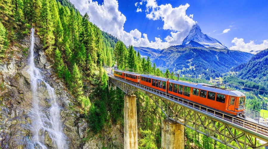 Known as the “slowest express train in the world,” the Glacier Express offers panoramic views of Switzerland’s breathtaking Alpine scenery.